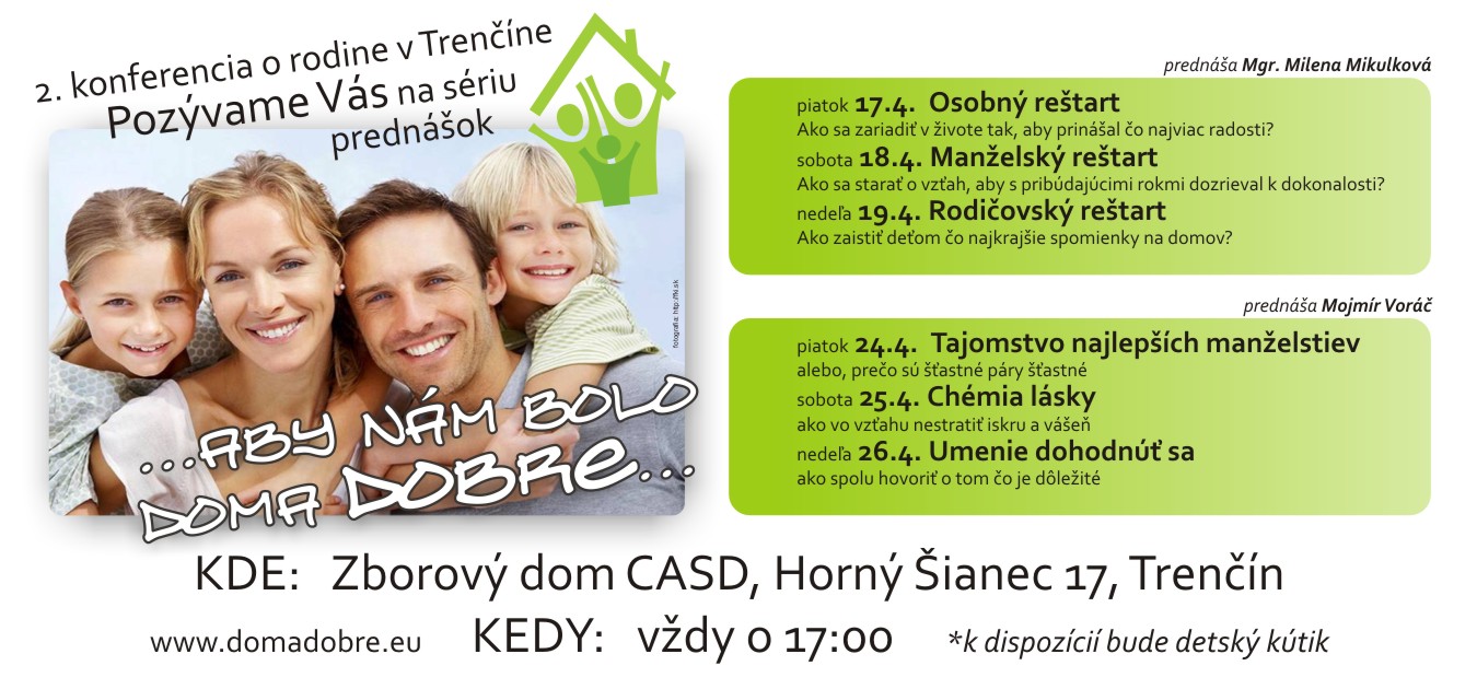 Srdečne Vás pozývame na 2. konferenciu o rodine v Trenčíne: „ABY NÁM BOLO DOMA DOBRE.”…